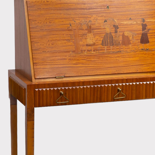 Inlaid Maple Slant Front Bureau with Fluted Drawers