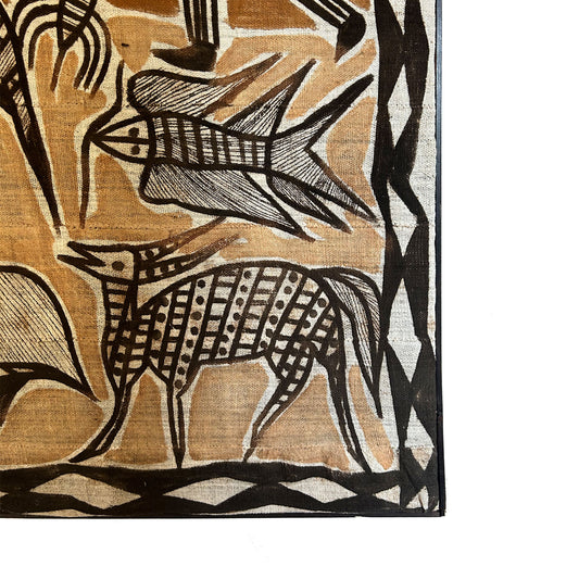 Graphic African Korhogo Mud Pigment Painted Cloth