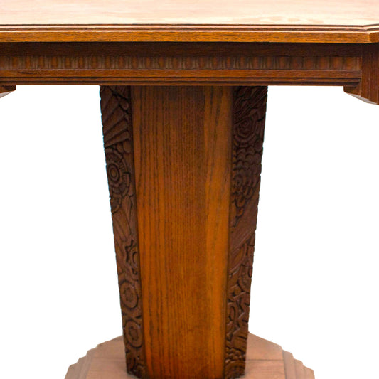 German Floral Carved Oak Art Deco Side Table