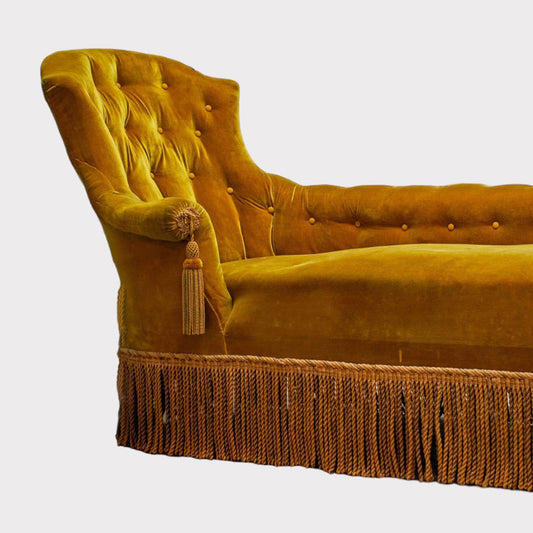 Vintage French Chaise Lounge in Mustard Velvet
