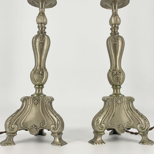 Table Lamps | Pair of Antique Pewter Candlestick Lamps
